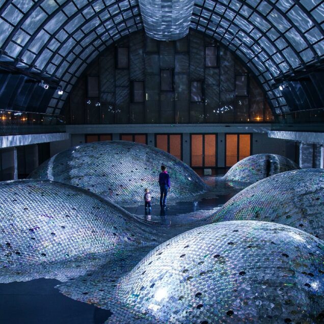 Avec Waste Landscape, une installation réalisée en collaboration avec l’architecte Clémence Eliard, les deux artistes façonnent un « paysage artificiel ondulé de 500 mètres carrés recouvert d’une armure de 65 000 CD invendus ou collectés ».